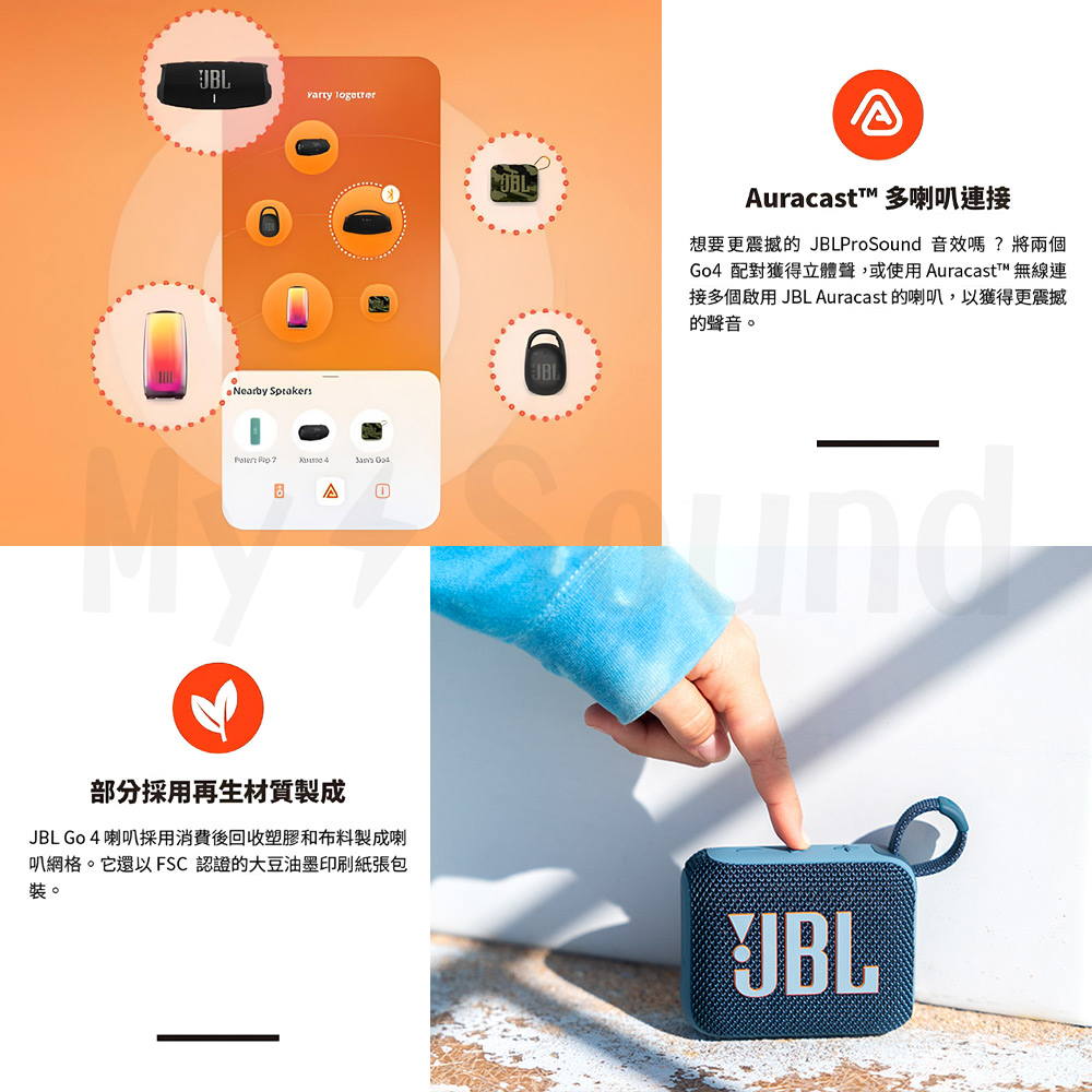 ‧内容物:JBLGO4、TypeC連接線、快速入門指南、保固卡和安全資料表