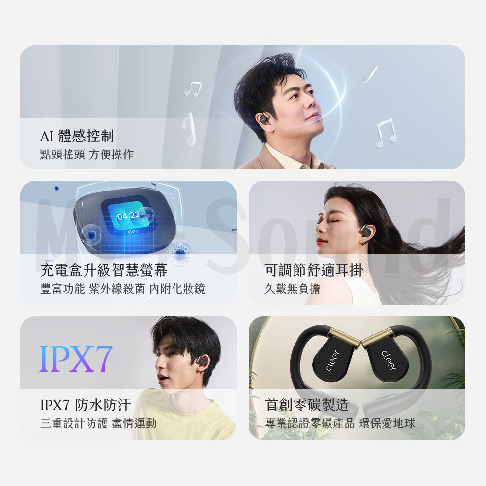 ‧商品內容物:Cleer ARC 3 開放式AI真無線藍牙耳機(運動版Pro)、充電盒、USB Type-C 充電線、說明書