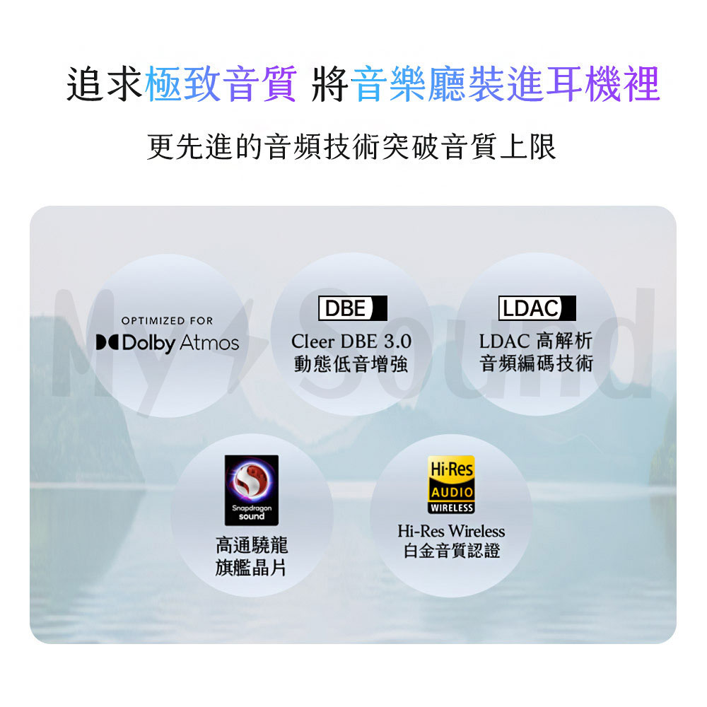 ‧音源編碼:aptX Lossless、aptX Adaptive、AAC、SBC、HWA、LDAC, LHDC, Hi-Res、LE Audio