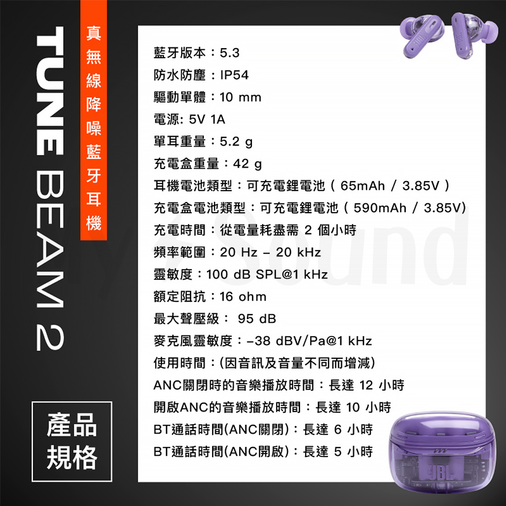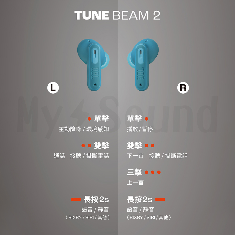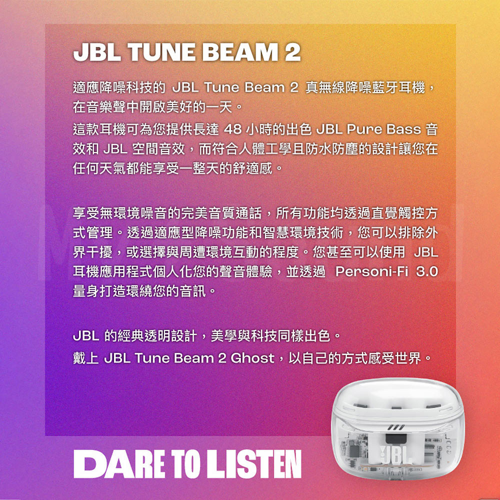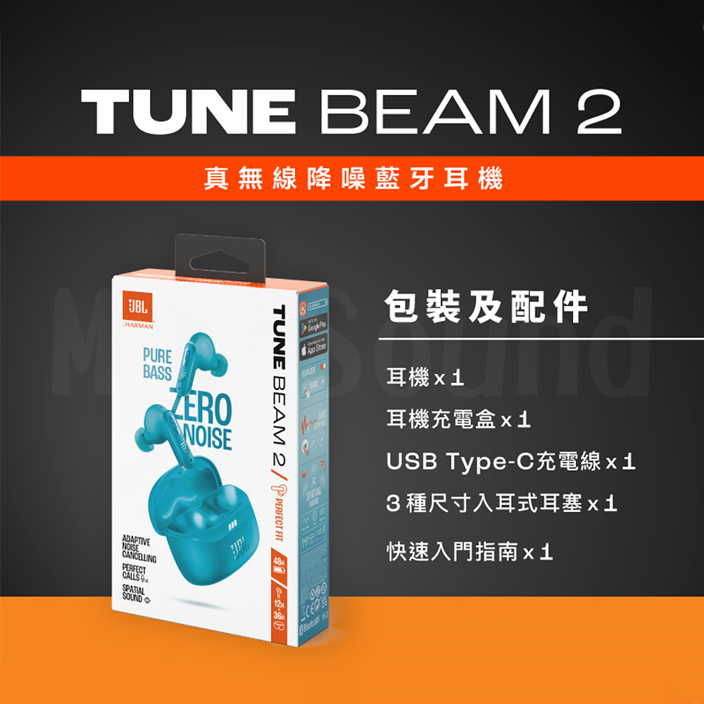 ‧產品特色:JBL Tune Beam 2 耳機 *1、充電盒*1、3種尺寸矽膠耳塞各1組、快速入門指南*1