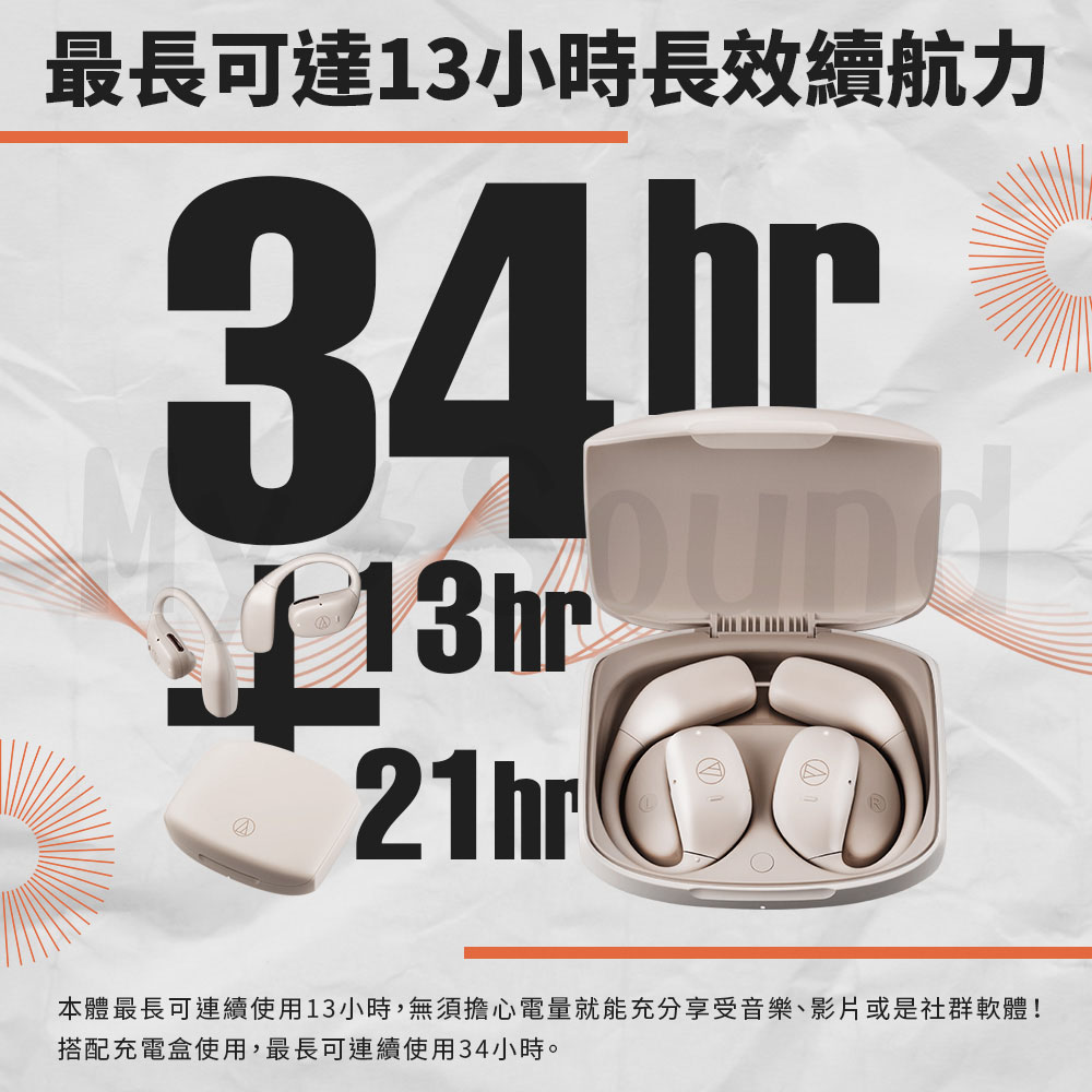 .電池續航力:耳機約13小時,搭配充電盒約34小時