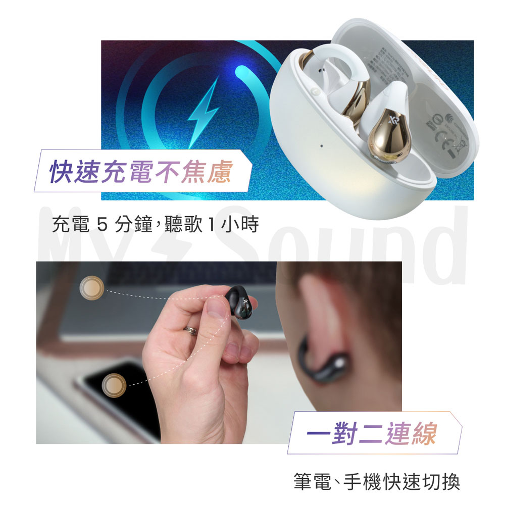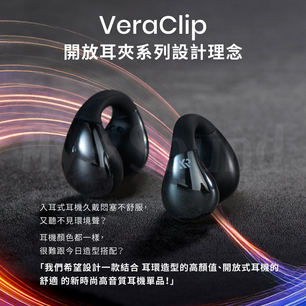 .型包裝內容:VeraClip 開放式耳夾耳機、充電盒、15cm Type-C充電線、說明文件、保固卡與快速指南