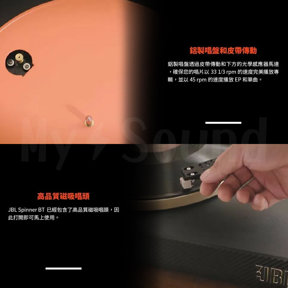 .内容物:唱盤、皮帶、鋁製轉盤、黑膠唱片固定墊、唱頭蓋和唱頭、防塵蓋和2個活動式鉸鏈、電源