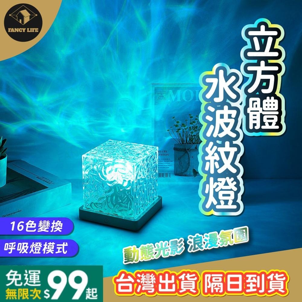 【台灣現貨滿額免運 立方體水波紋燈】水波紋燈 氣氛燈 投影夜燈 房間佈置 小夜燈 氛圍燈 led 夜燈