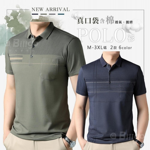 【Billgo】熱銷⚡涼感條紋/線條薄口袋短袖男POLO衫-3色 M~3XL碼 【TX163202】棉質網眼條紋男上衣