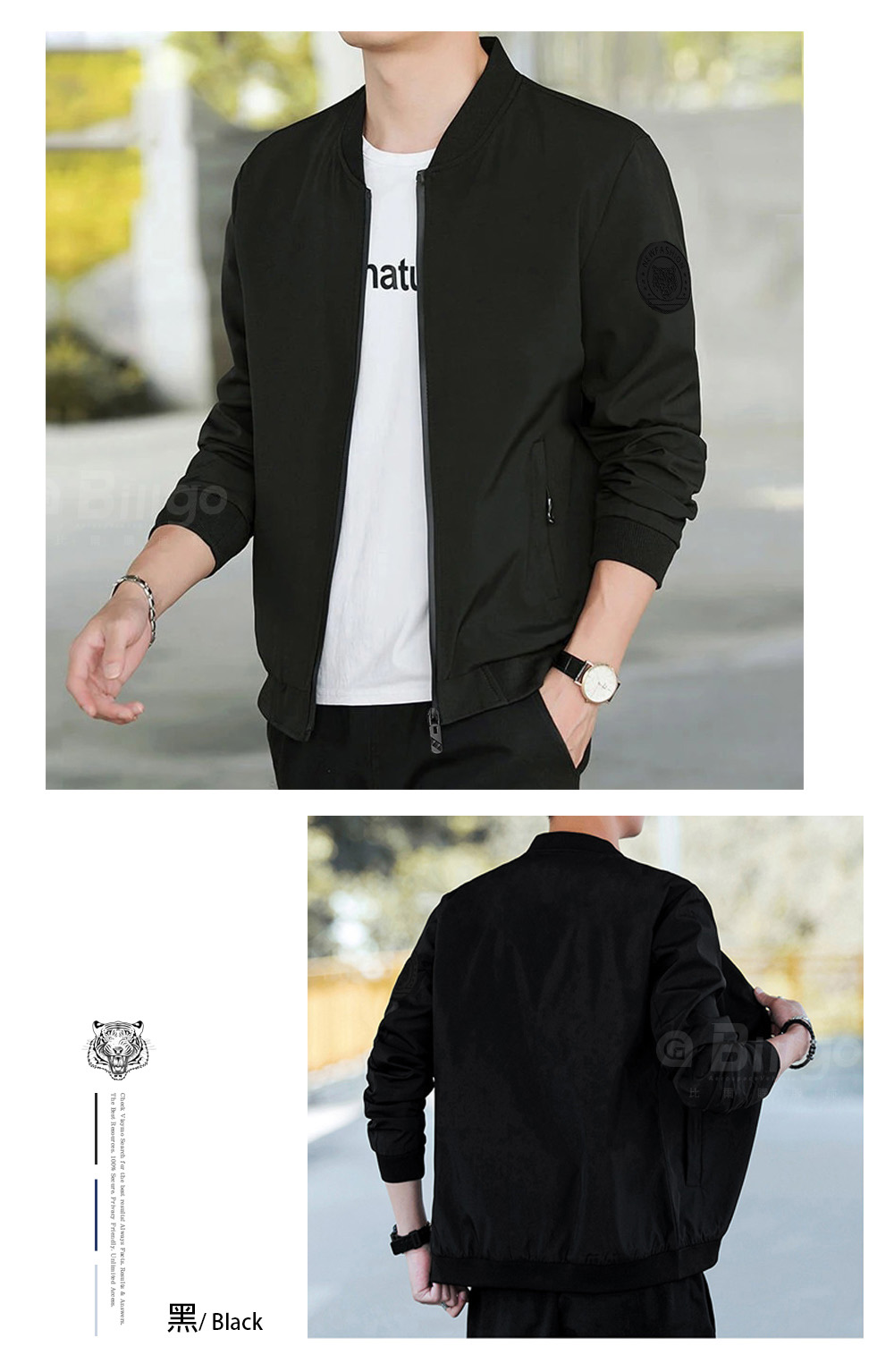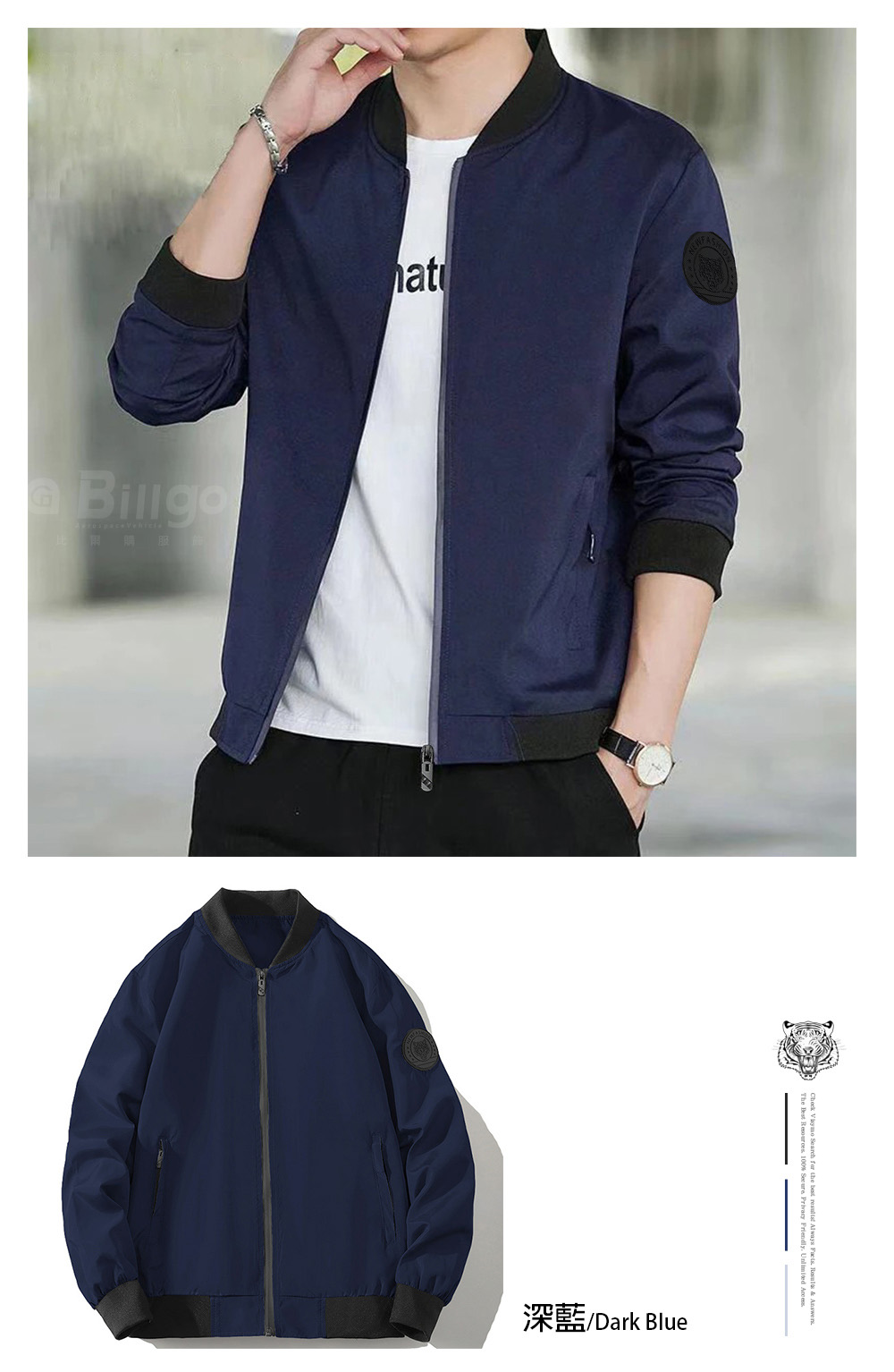 ☆手臂精緻虎頭膠牌設計,增添潮流視覺。