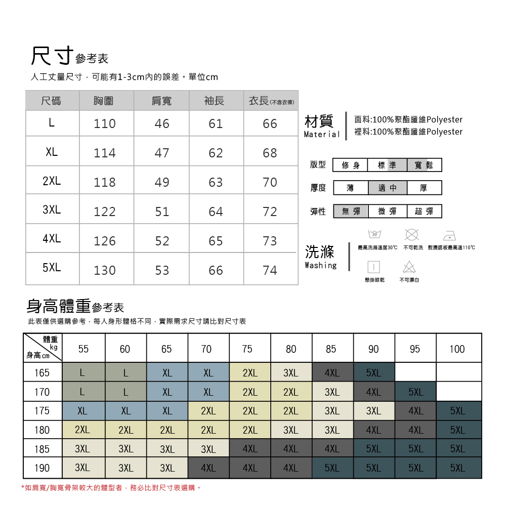 ▲此款建議表穿起來為【適中】,如肩寬/胸寬骨架較大的體型者,務必比對尺寸表選購。