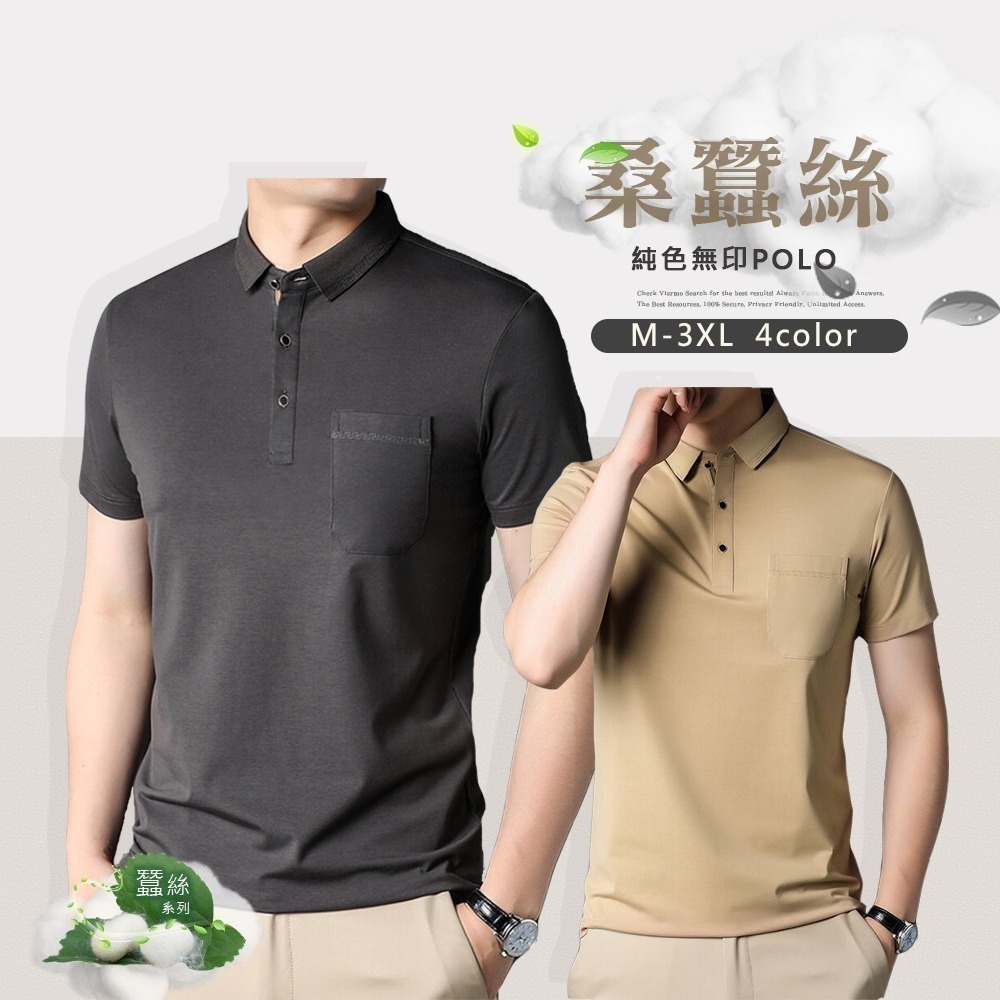 【Billgo】蠶絲無印短袖口袋POLO衫-4色 M~3XL碼 蠶絲短袖 涼感 短袖POLO衫 冰感【TX164308】