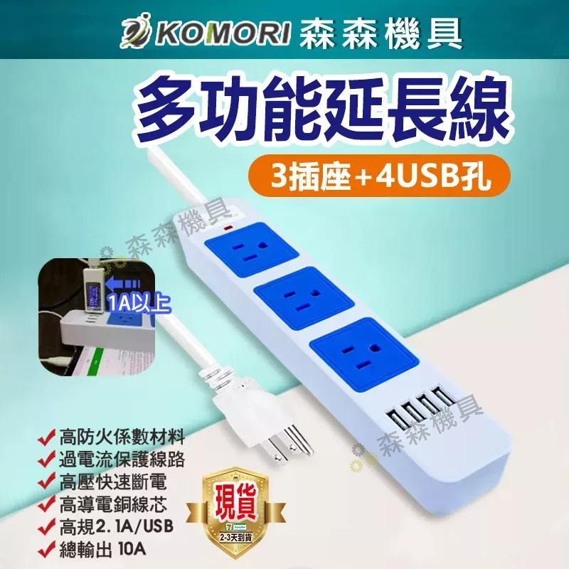 #延長線 #插座 #排插 #4USB #充電 #過載保護 #內芯耐高溫 #森森機具 #森森