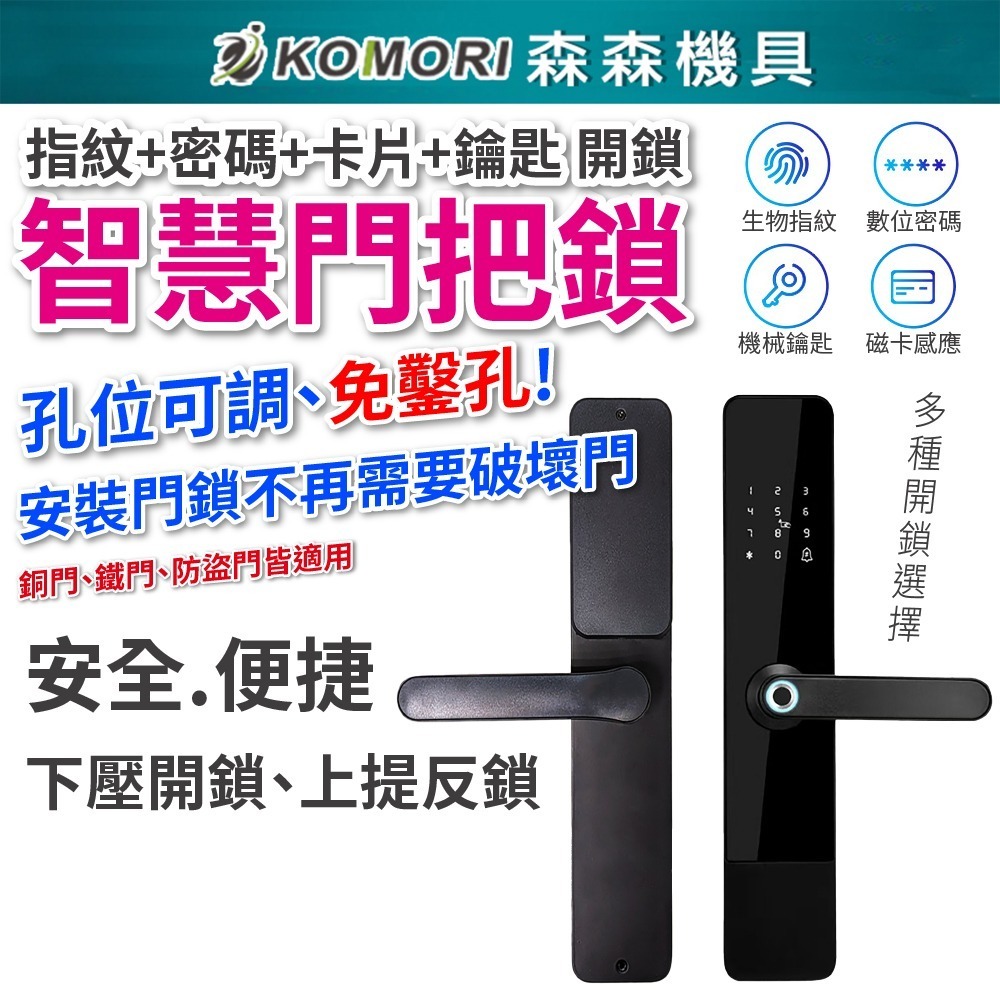 【Komori森森機具】智慧門把鎖 三合一 免打孔 免鑿孔 智能鎖 門鎖 密碼鎖 智慧鎖 指紋鎖 卡片鎖 數位鎖 防盜鎖