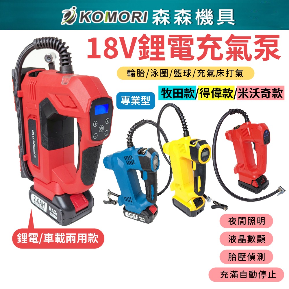 【Komori 森森機具】專業型鋰電充氣泵 車載/鋰電 兩用 牧田款 得偉款 米沃奇款 打氣機 無線數顯 自動充氣