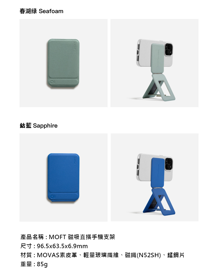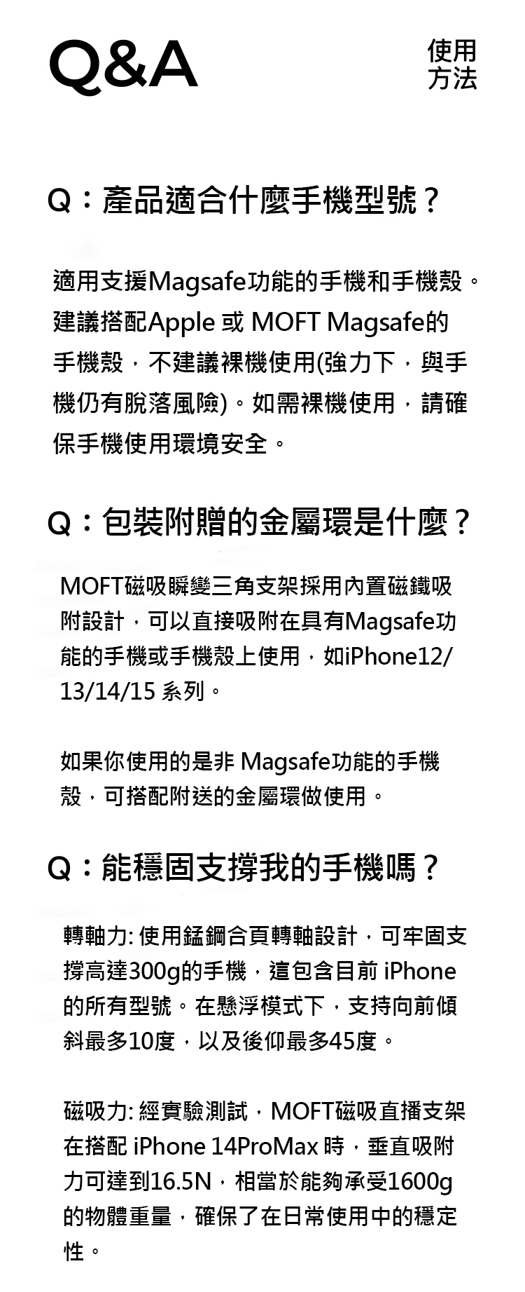 *支架內附贈 MOFT 引磁環(材質:鐵片),非 MagSafe™ 手機可將引磁環貼在手機上確保瞬變三角支架磁吸穩固。
