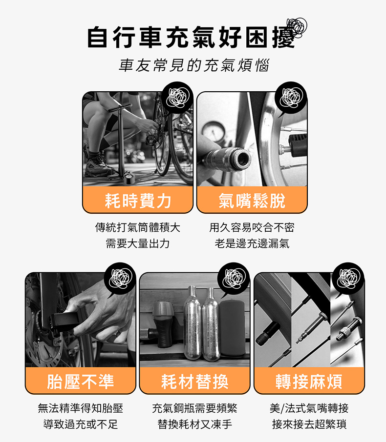 Q:GIGA!自行車幫浦支援哪些充氣設備呢?