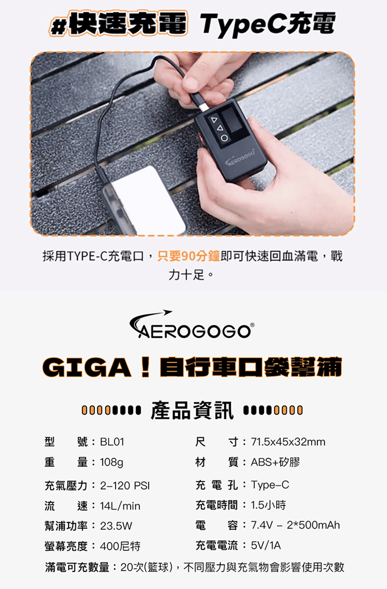 品名:Aerogogo GIGA!自行車口袋幫浦