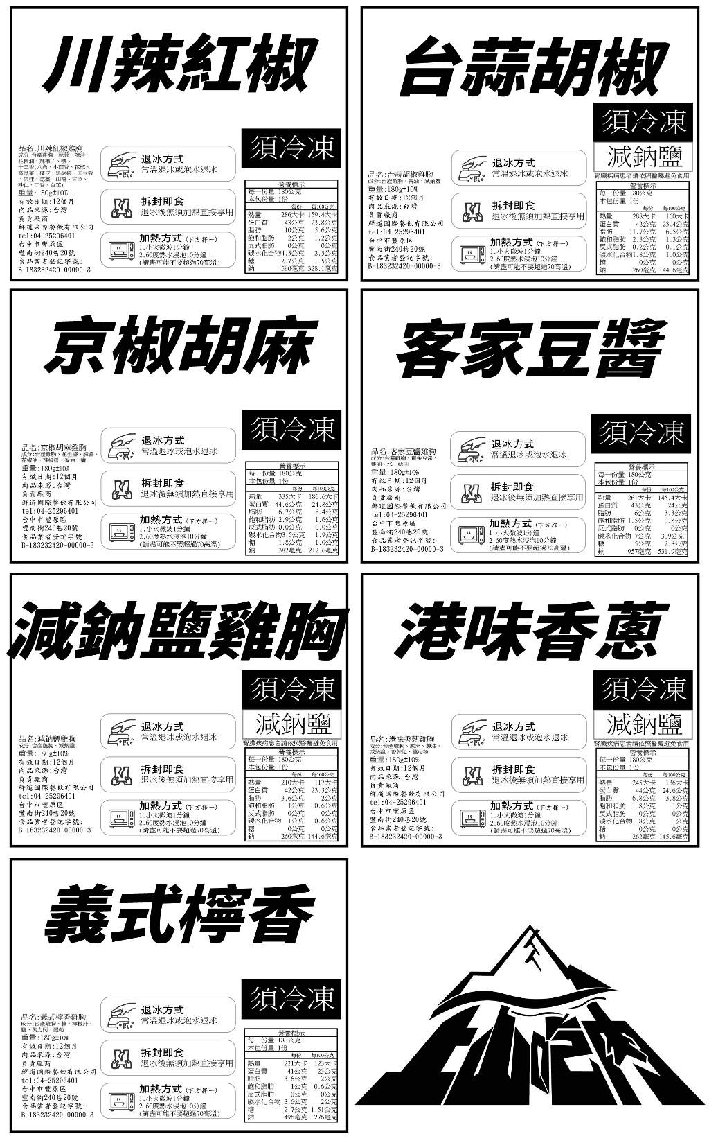 減鈉鹽雞胸*3 台蒜胡椒*3 港式蔥香*3 義式檸香*3 客家豆醬*3 京椒胡麻*3 川辣紅椒*3