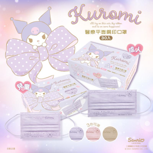 水舞成人兒童平面醫療口罩 三麗鷗-酷洛米蝴蝶結款 30入