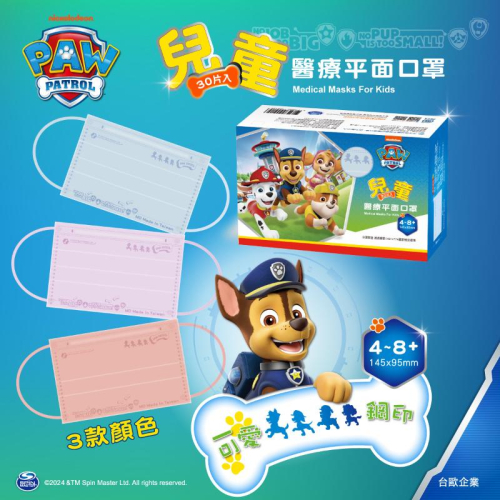 水舞生醫兒童平面醫療口罩 Paw Patrol 汪汪隊立大功 30入/盒 適合4至8歲