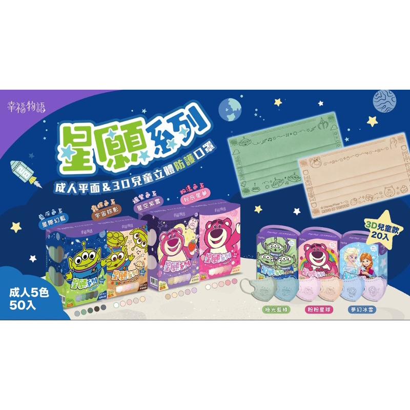 幸福物語 迪士尼皮克斯 星願系列 成人平面50入&兒童3D立體20入 防護口罩