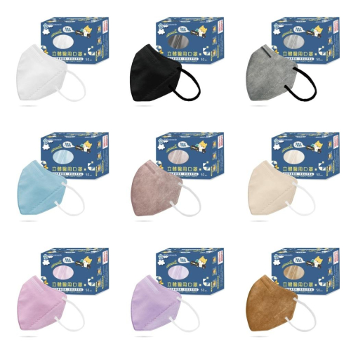 興安3D立體醫療口罩 兒童M中童S幼童XS 素色系列(50片/盒)