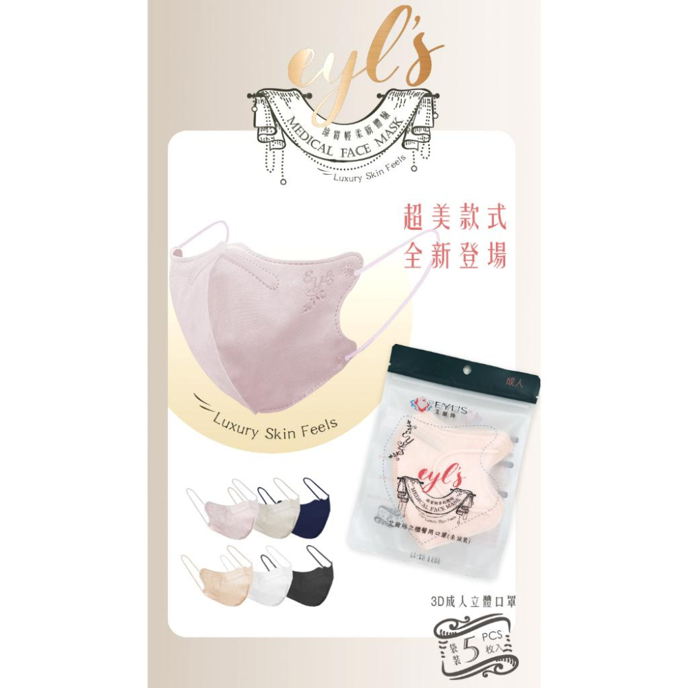 EYL'S艾爾絲醫用口罩 成人3D立體 暢銷新色系 輕量5片袋裝