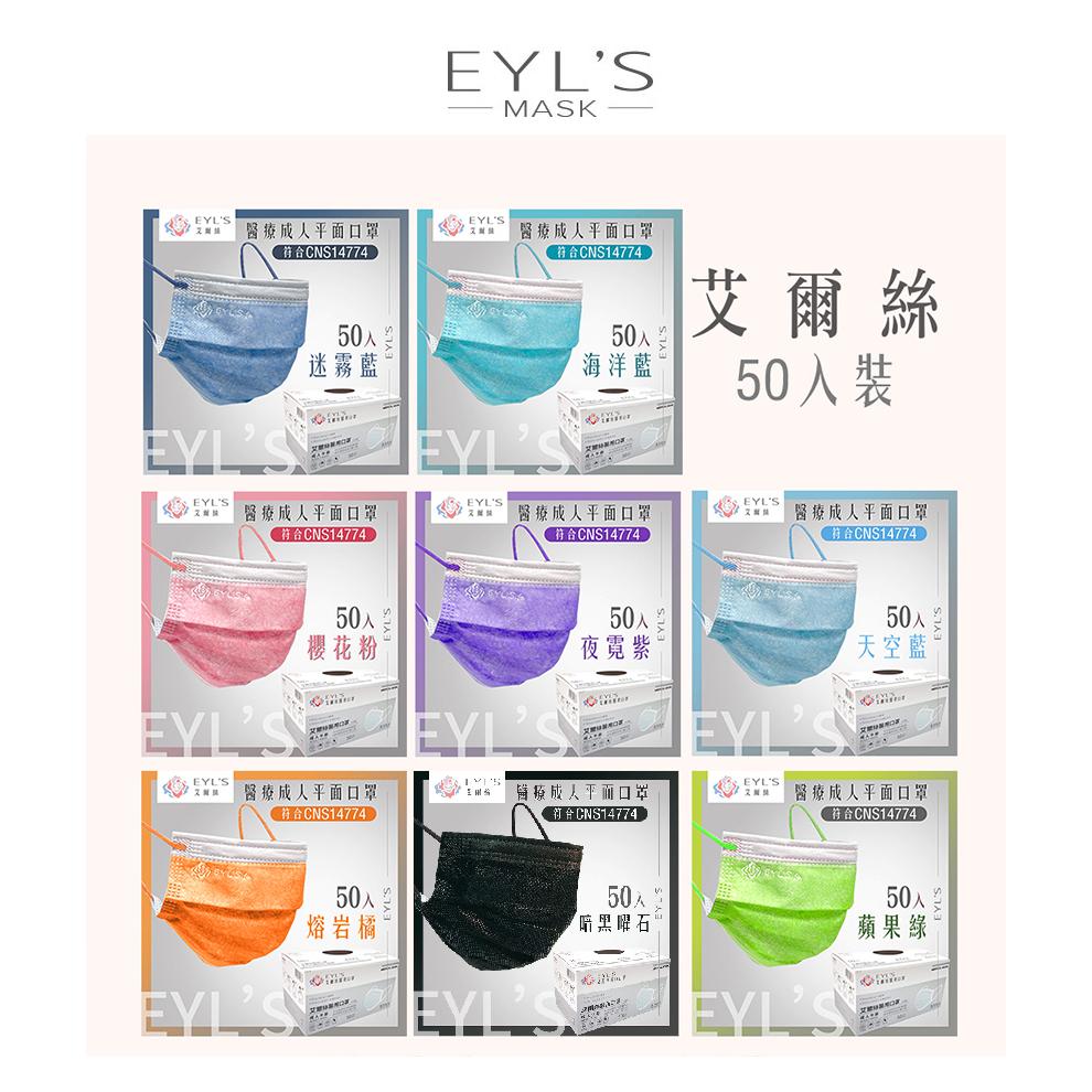 EYL'S艾爾絲醫用口罩 成人平面 彩色耳繩 50片/盒