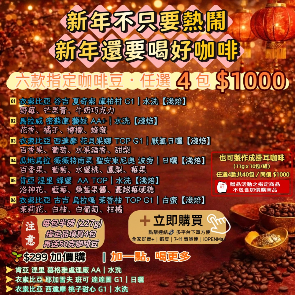 🧧🎁 拜年送禮推薦|精品咖啡豆 任選 4 包 $1000 🎁🧧