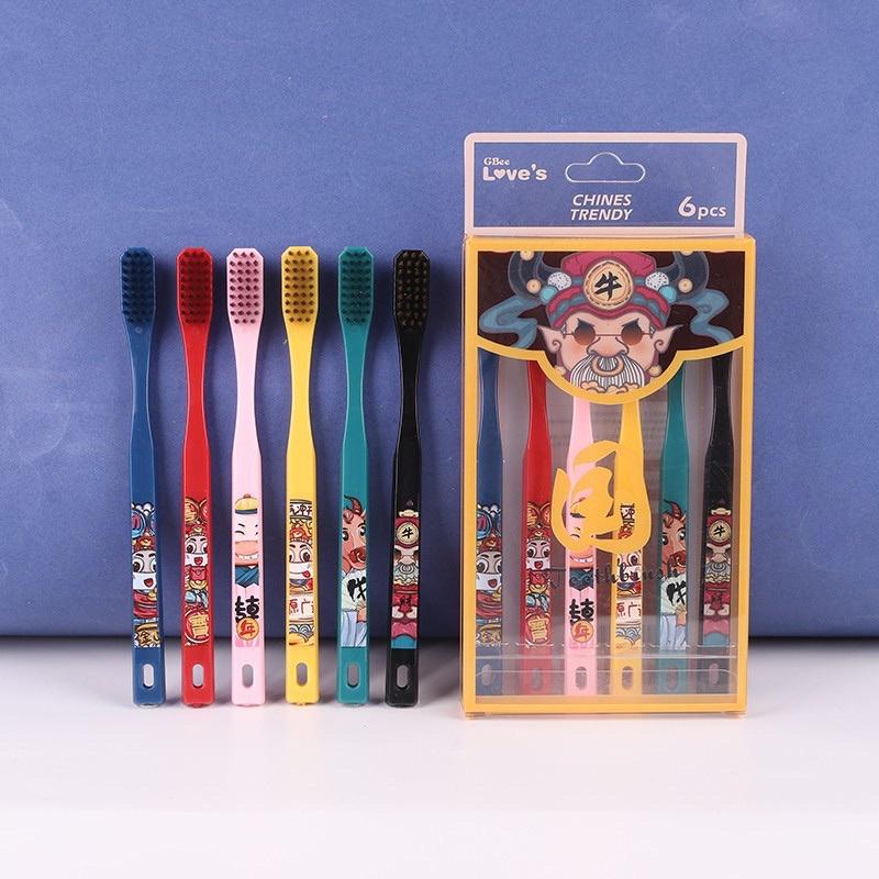 🇹🇼台灣出貨 👏方頭潮風6支裝軟毛牙刷 成人寬頭牙刷
