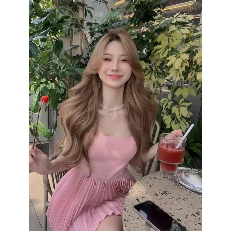W.A.N.Y.I 粉色露背吊帶百褶連衣裙