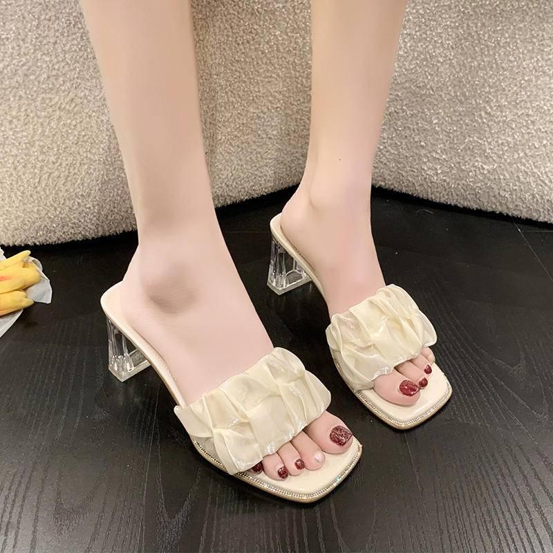 W.A.N.Y.I 法式網紗一字帶仙女風高跟凉拖鞋透明跟鞋