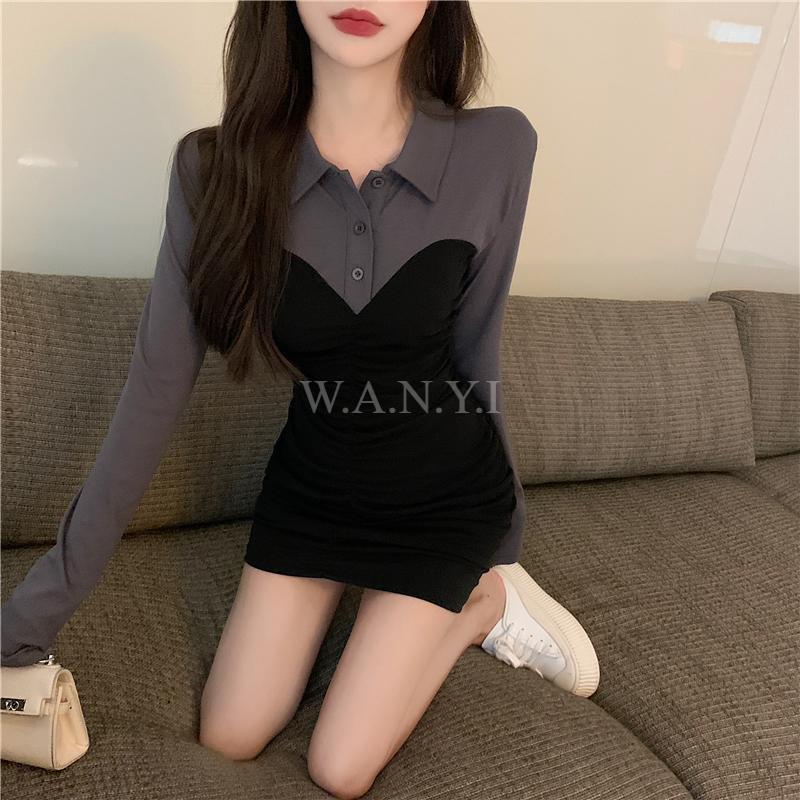 W.A.N.Y.I秋款顯瘦假兩件式包臀連身裙洋裝