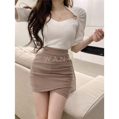 W.A.N.Y.I 不規則高腰抓皺半身裙包臀裙短裙