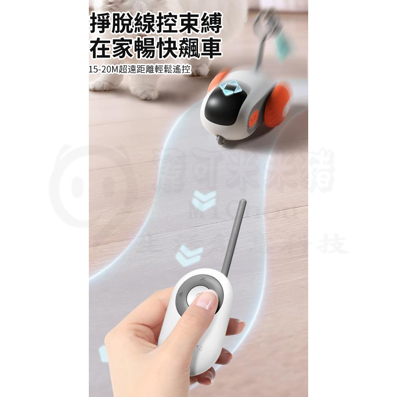 配備遙控器,輕鬆控制玩具車的行駛方向,與貓咪互動玩耍。