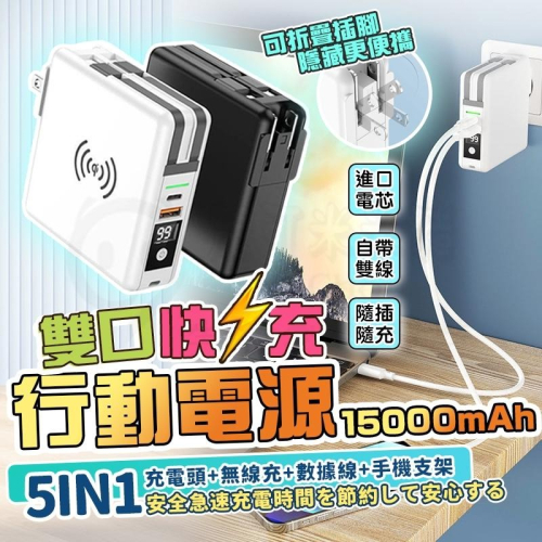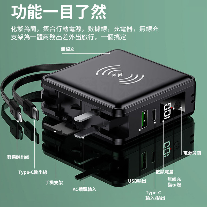 全面位萬能充 方型六合一 五合一 15000mah行動電源 無線充電 適用三星 安卓 iphone