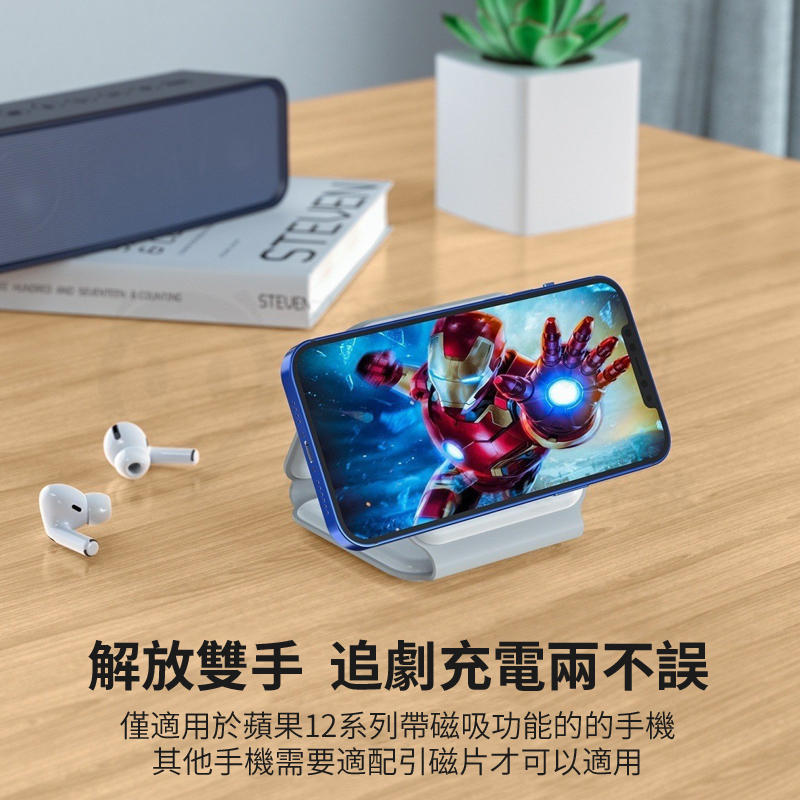 3.iPhone12-14以外的機型都不支援磁吸功能 需要搭配磁吸手機殼或者磁吸貼 才能磁吸到無線充電器上