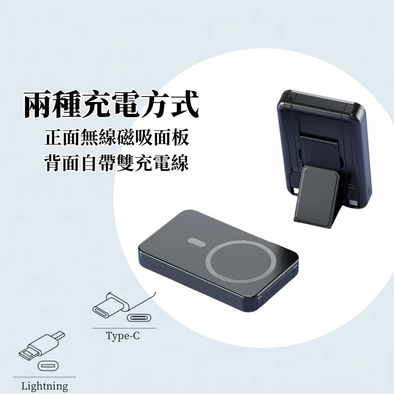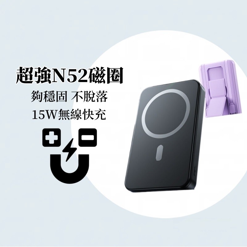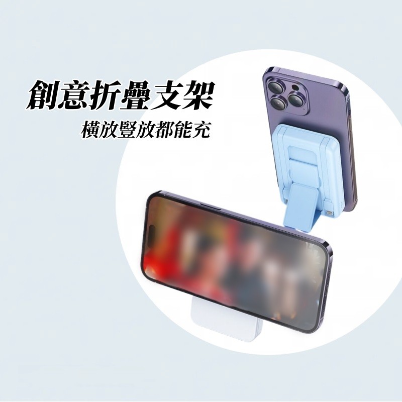 ✅ 磁吸充電體驗設計,無論何時何地,電量如影隨形:移動電源一貼即走,帶超薄折疊支架,讓您操控手機不受限