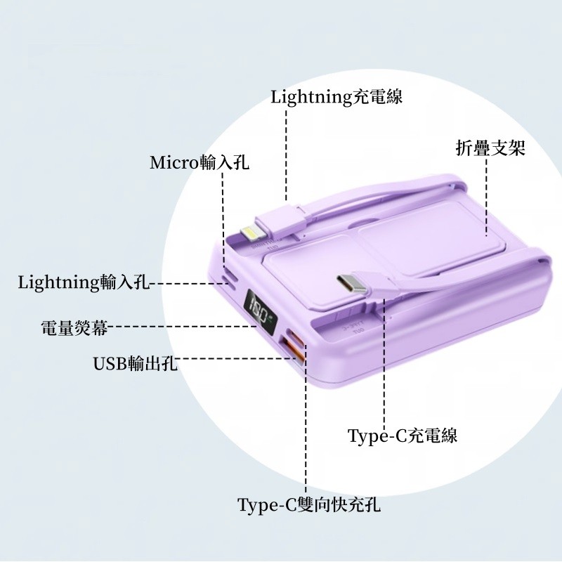 ✅ 自帶可折疊支架,是行動電源也是手機架,看劇,Youtube都方便