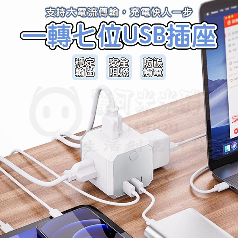 🎉專注3C🎉轉向插座 魔方插頭 擴充延長線插頭 手機電腦線 TypeC極速快充+ 2USB插座+ 4電源電線插座