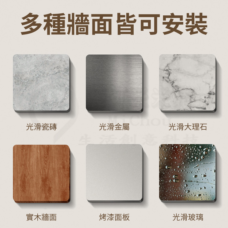 ✔️適用牆面 : 光滑磁磚 / 光滑金屬 / 光滑大理石 / 實木墻面 / 烤漆面板 / 光滑玻璃