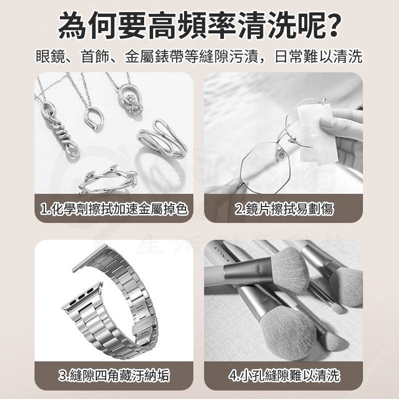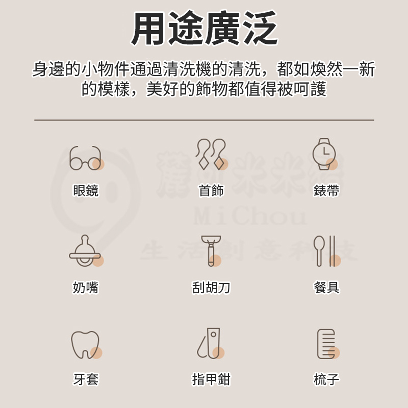 產品用途:眼鏡 珠寶 首飾 手錶 假牙 戒指 剃鬚刀 美妝用品 牙套 鋼筆 奶瓶 餐具 指甲剪 梳子 口哨等等都可以清洗