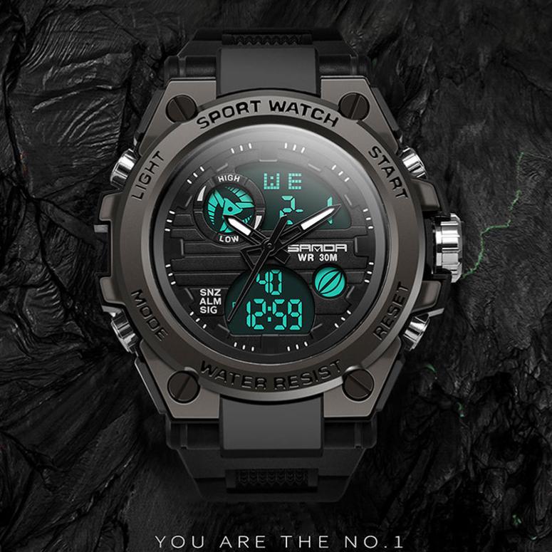 SANDA運動手錶 大錶盤學生手錶 雙顯手錶 夜光手錶男生 雙顯手錶 潮流防水電子錶 多功能電子手錶 數字錶