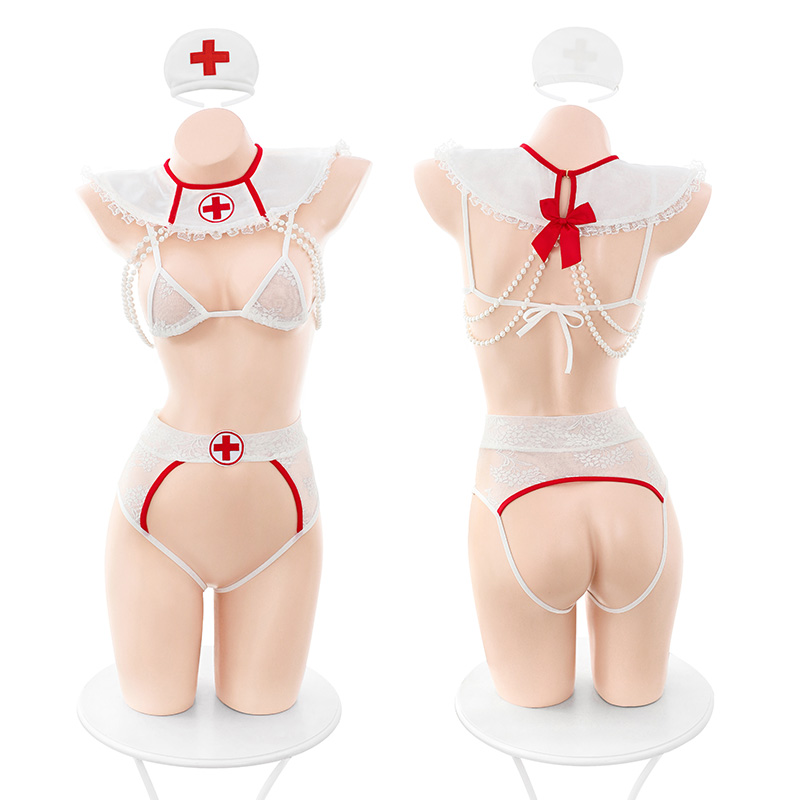 💖顏色:白色<髮箍+領子+文胸+開檔內褲>