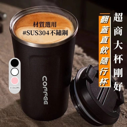 👉品名:飪我行304不鏽鋼翻蓋直飲咖啡保溫杯