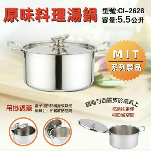 【鵝頭牌】不鏽鋼鍋 大容量雙耳湯鍋 CI-2628 / 泡麵鍋 湯鍋 煮鍋 / 全程台灣製造 304不銹鋼