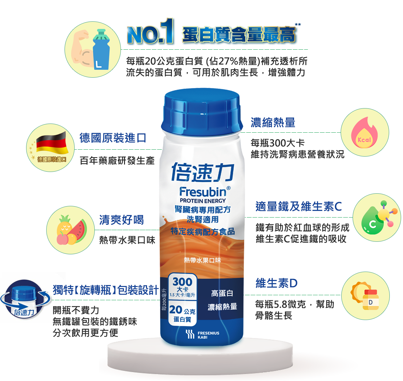 🎉No.1 蛋白質含量最高,每瓶20公克蛋白質,補充洗腎時大量流失的蛋白質,