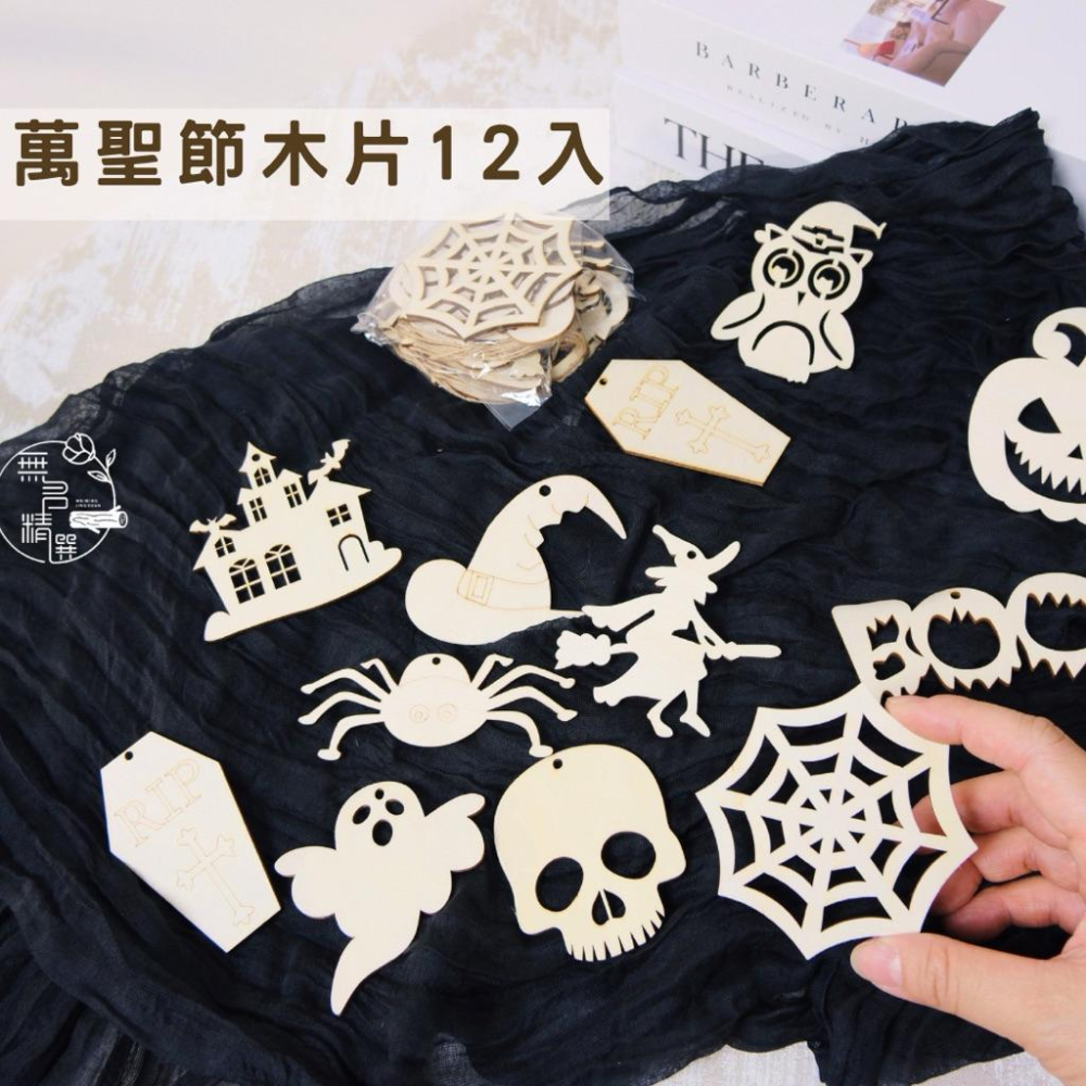 現貨🔺萬聖節木片12入|送麻繩|彩繪木片 幼兒園萬聖節 親子DIY木片 萬聖節南瓜