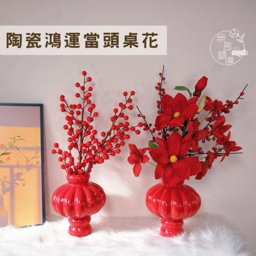 現貨🔺陶瓷鴻運當頭桌花|陶瓷新春桌花 擺飾 新年佈置 招財迎春 桌花 花器 擺設 公司居家適用 陶瓷花瓶 紅色花瓶