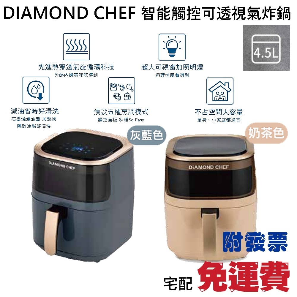 免運費-附發票 DIAMOND CHEF 智能觸控可透視氣炸鍋 DIAMOND CHEF氣炸鍋 減油 少油 4.5L