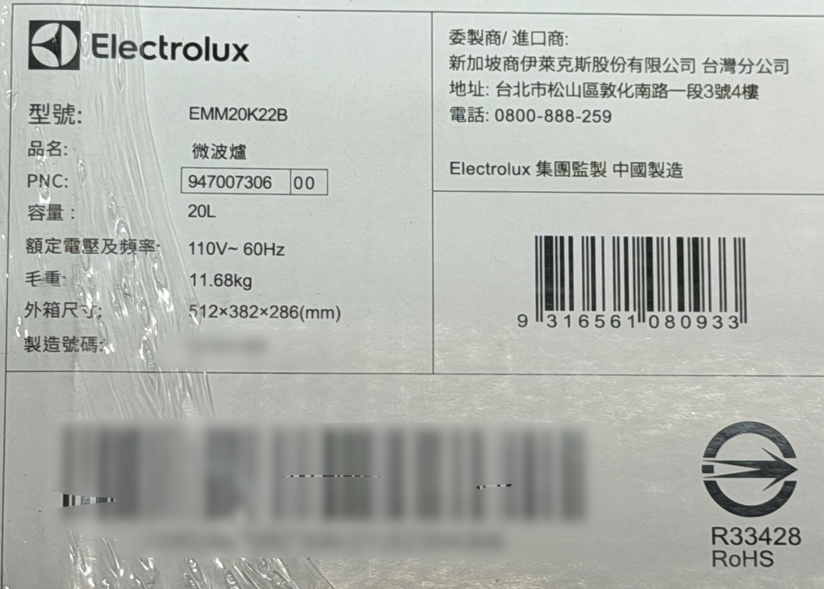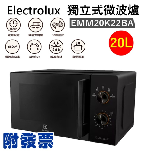 Electrolux 伊萊克斯 極致美味 300獨立式微波爐 20L EMM20K22B 直覺功能超做簡單-發票保固一年