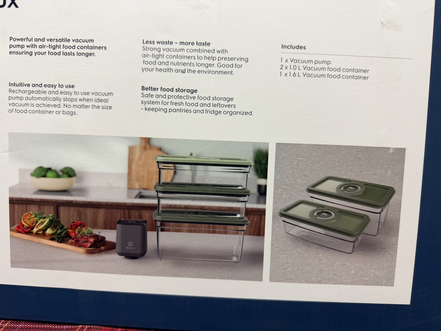 盒內配件真空幫浦x1,USB沖電線x1,1L保鮮盒x2,1.6L保鮮盒x1