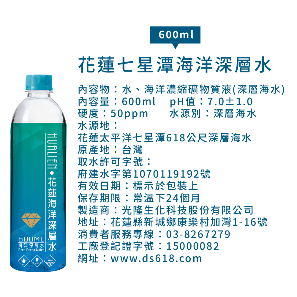 【光隆海洋生技】花蓮七星潭海洋深層水600mlx24入/箱